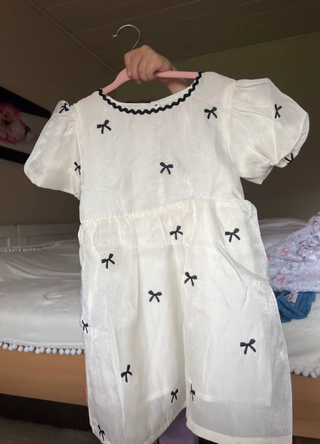 Fiyonklu Balon Kol Elbise & Romper (Kız Kardeş Uyumlu)